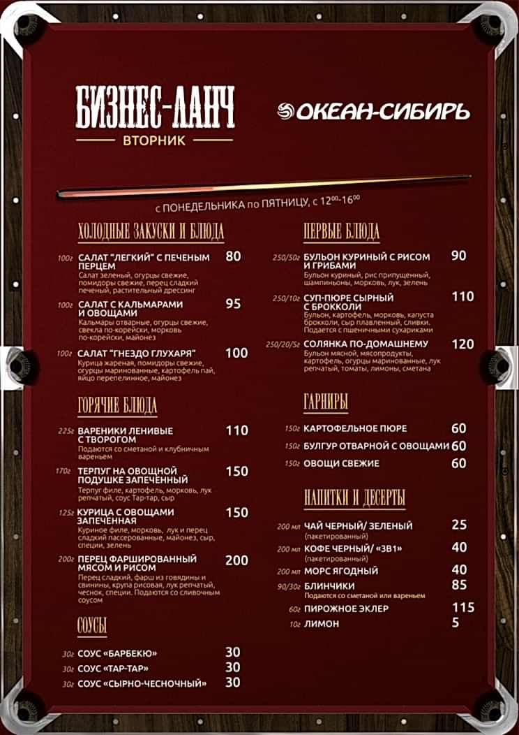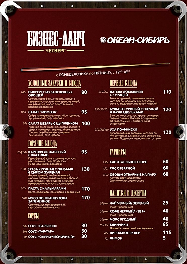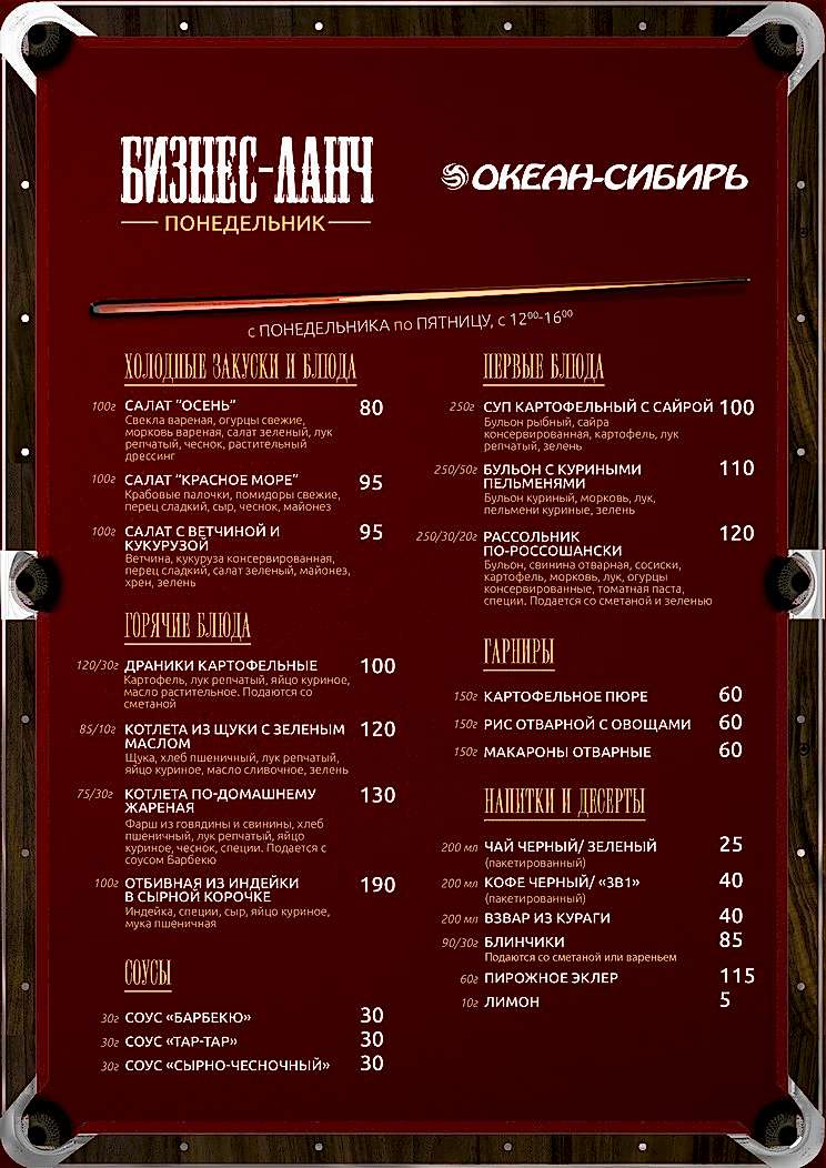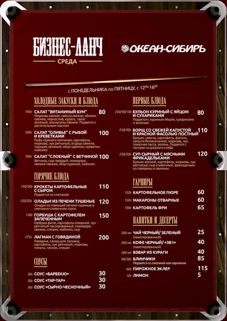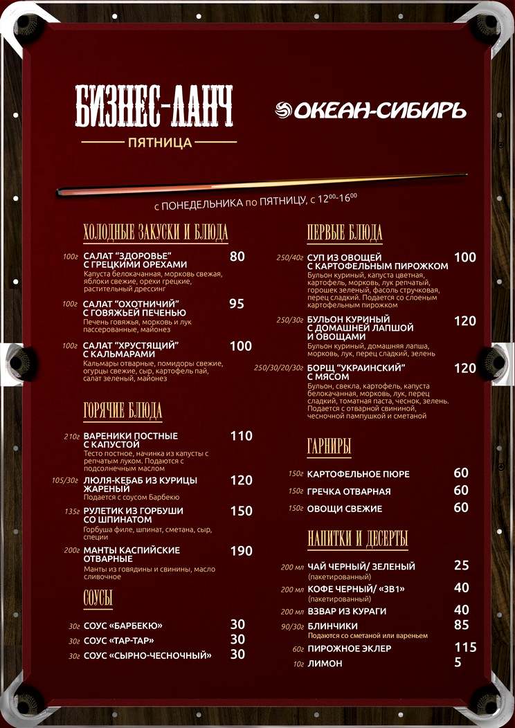Не знаете, куда сходить набизнес-ланч в Алматы? Приглашаем в наш ресторан, где каждый день с 12 до 16 часов Вас ждёт вкуснейший Pin-Up бизнес-ланч. Мы находимся в деловом центре Алматы, на Иртышской Набережной, поэтому Вам не составит труда заглянуть к нам на обед и покушать с удовольствием. Наши повара позаботились о разнообразии и вкусе превосходных блюд в меню, а демократичные цены позволят попробовать всё, что душе угодно: разнообразные супы, сытные вторые блюда, лёгкие салаты, бодрящие напитки и великолепные десерты.